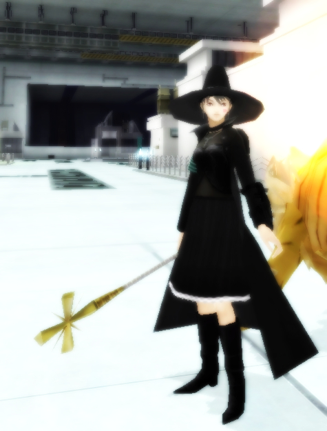 ズボンとブーツはない訳ではないのですが、なんとなくスカートのほうがかわいらしかったのと、ダークメイルブーツのデザインが思ったよりもゴツくて野暮ったかったので美脚にしました…が、なんか魔女みたいな近接に^-